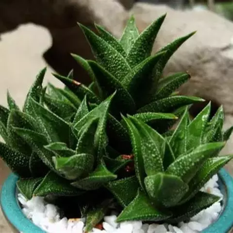 矮黑王寿为百合科十二卷属,多年生肉质草本植物,原产南非。植株矮小、无茎。