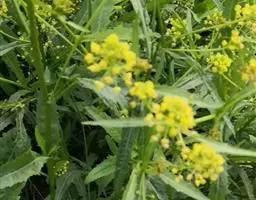 植株光滑无毛,高10-40厘米,茎直立或成 铺散状分枝,有时带紫红色,基生叶有柄,羽状 深裂或者浅裂,基部略成耳状抱茎,边缘有不整齐锯齿。总状花序顶生;花黄色,近无梗,单生叶状苞片腋部,萼片宽披针状,长1.5-2毫米,宽约1毫米,花瓣倒卵形,稍长于萼片,基部渐狭成爪。