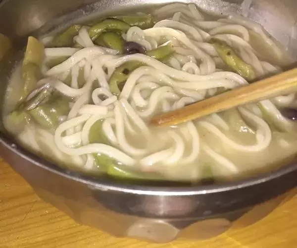 8、开水下锅,手擀面比较好熟,煮一开即可