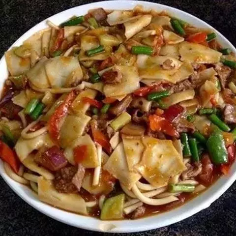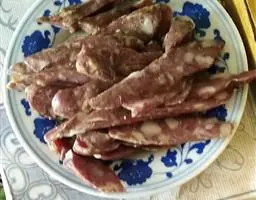 将面粉(2.25公斤)倒入缸内(留250克作扑面),用冷水800克溶化精盐(15克)、食碱,分数次倒入,将面粉拌成颗粒状,再搋揉成团,置案板上饧透,边揉边叠,每叠一次在面团接触面蘸水少许,如此反复多次至面团由硬回软,搓成粗条,盘成圆形,用湿毛巾盖好待用。