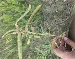 (2)翅荚香槐,荚果椭圆形,长约5cm,宽约1.5cm,背缝及腹缝外均扩大成狭翅状。