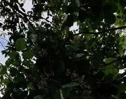 2、翅荚香槐又名:小叶光板朱藤。大乔木,高30米,胸径80-120厘米;树皮暗灰色,多皮孔。一年生枝被褐色柔毛,旋即秃净。奇数羽状复叶;小叶3-4对,互生或近对生,长椭圆形或卵状长圆形,基部的最小,顶生的最大,通常长4-10厘米,宽3-5.5厘米,先端渐尖,基部钝圆或宽楔形,侧生小叶基部稍偏斜,上面无毛,下面近中脉处被疏柔毛或无毛,中脉上面稍凹陷,下面明显隆起,侧脉6-8对,近边缘网结,细脉明显;小叶柄长3-5毫米,密被灰褐色柔毛;小托叶钻状,长达2毫米,无毛。圆锥花序长30厘米,径15厘米;花序轴和花梗被疏短柔毛,花梗细,长3-4毫米;花萼阔钟状,与花梗等长,密枝棕褐色绢毛,萼齿5,三角形,近等长;花冠白色,芳香,旗瓣长圆形,瓣片长6毫米,宽4毫米,柄长约4毫米,先端圆或微凹缺,翼瓣三角状卵形,瓣片长8毫米,宽5毫米,柄长3-4毫米,稍具耳,龙骨瓣卵形,与翼瓣近等长,稍宽,柄纤细,长约4毫米;雄蕊10,离生;子房线形,被淡黄白色疏柔毛,花柱稍弯曲,胚珠5-6粒。荚果扁平,长椭圆形或长圆形,长4-8厘米,宽1.5-2厘米,两侧具翅,不开裂,有种子1-2粒,稀4粒;种子长圆形,长约8毫米,宽3毫米,压扁,种皮深褐色或黑色。花期4-6月,果期7-10月。