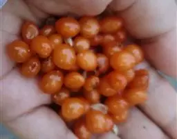 (1)香槐,荚果呈条状而扁,长3-7cm,宽8mm左右,表面黄绿色,密被短柔毛。果皮硬,内有种子2-4颗。种子肾状,椭圆形,扁平,长约4mm,径约3mm,青灰褐色,光滑。