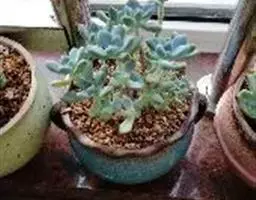 蓝黛莲是一种景天科厚叶草属植物。叶片呈略扁的圆柱形,排列成莲座状;颜色为灰绿色,…