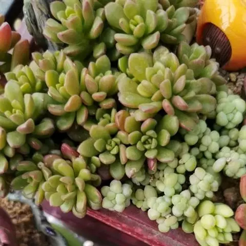 铭月是景天科景天属的多年生亚灌木。多分枝,茎蔓生或直立,高约10-30厘米。…