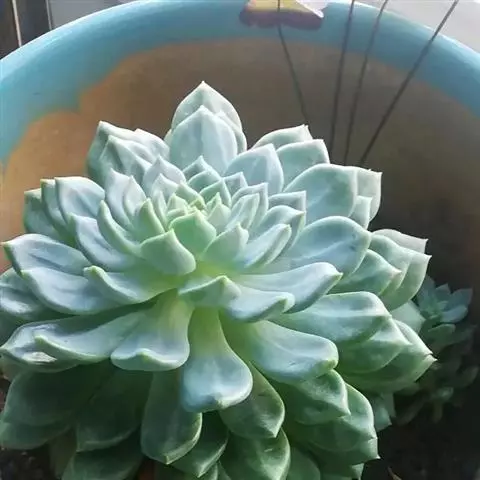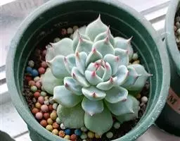 蓝石莲是景天科、拟石莲花属的多肉植物。茎部粗壮,成熟植株茎部木质化。叶片莲座型密集排列,株径不会很大,…