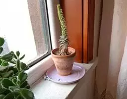 小乔木,高2~6米,直径10~25厘米,老时呈灰色或淡灰色,幼时绿色,上部平展或分枝;小枝肉质光棍…