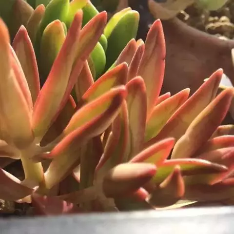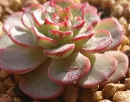 小红衣是景天科、拟石莲花属的一种多肉植物。叶片匙形,扁平细长,叶表具白粉,有明显的半透明边缘,…