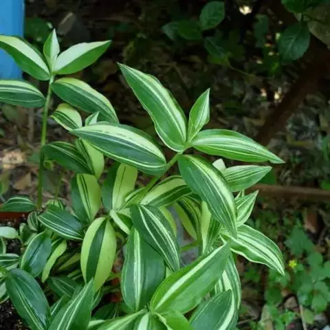 花叶水竹草,鸭跖草科,鸭跖草属,常绿宿根草本,花白色。不耐寒。