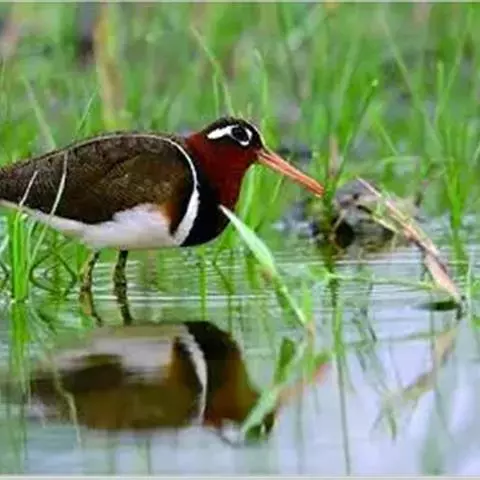彩鹬栖息于平原、丘陵和山地中的芦苇水塘、沼泽、河渠、河滩草地和水稻田中。