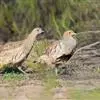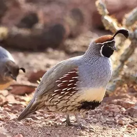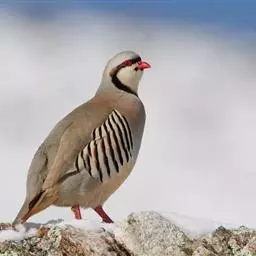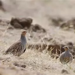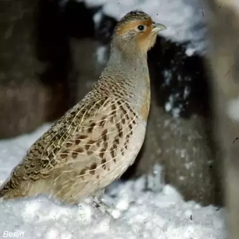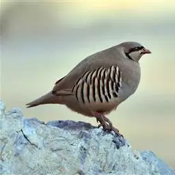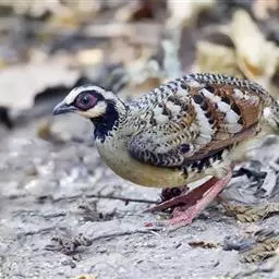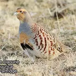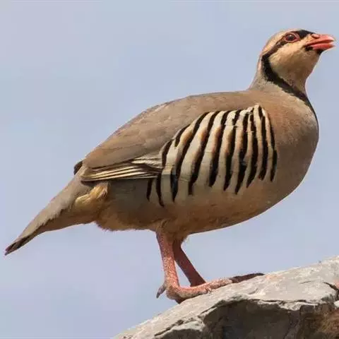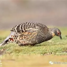 体大的灰褐色鹑类。胸灰色具黑色细纹。与相似种类四川雉鹑不同处在于栗色喉块外缘近白。有猩红色眼周裸皮。…