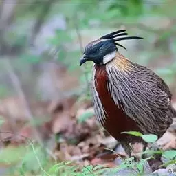 黄腹角雉:是鸟纲、雉科中国特产的一种鸟类。体长约50-65厘米。雄鸟上体栗褐色,…
