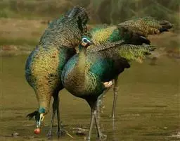 蓝孔雀,是鸡形目雉科孔雀属中的一种鸟。蓝孔雀是鸡类中的“巨人”,雄鸟和雌鸟的羽色有差,雄鸟头上具冠羽,…
