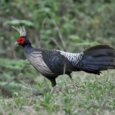 白马鸡共有四个亚种。是大型雉类,体长80-100厘米。通体大都白色,头侧绯红色;头顶具黑色短羽,…