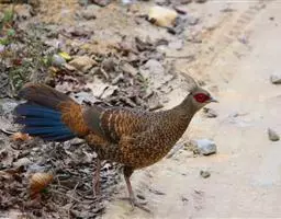 白颈长尾雉:大型鸡类,体长81厘米,体型大小和雉鸡相似。雄鸟头灰褐色,颈白色,脸鲜红色,其上后缘有…