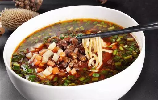 三、在另一锅里下面,等面熟后捞出。给每人尝芫块头的样子后,乘制作好的汤,即可食用。