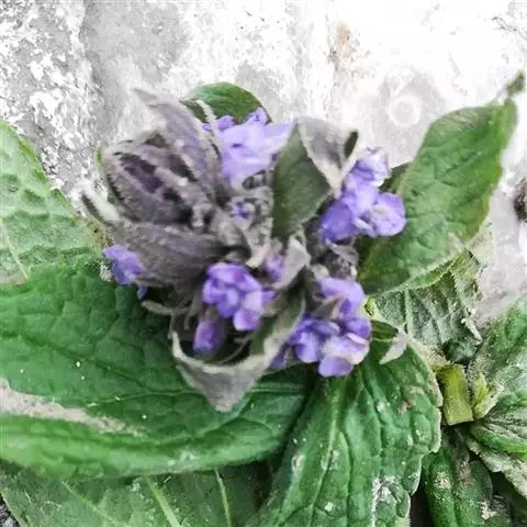 药材性状:全株皱缩,形似绵球状。根圆锥形,长4-6cm,黑褐色或棕黑色;质脆,易折断,断面不平整,黄白色。茎呈方柱形,有节。叶对生,茎下部叶鳞片状,中上部叶密集,叶片卵圆形,长宽3-4cm,先端急尖,基部宽楔形,上部边缘有锯齿,两面被白色绵毛,网脉粗糙明显。轮伞花序隐藏在叶丛中;花冠二唇形,淡紫色至粉红色或淡黄色。气微,味淡。