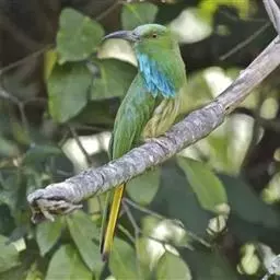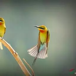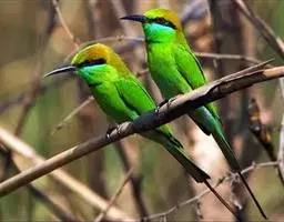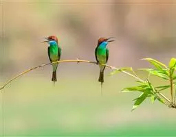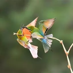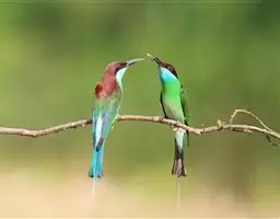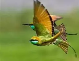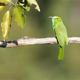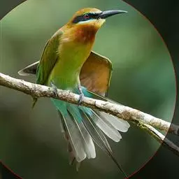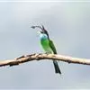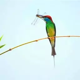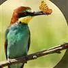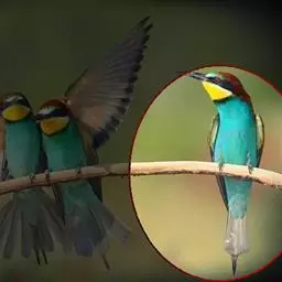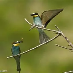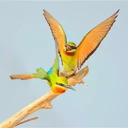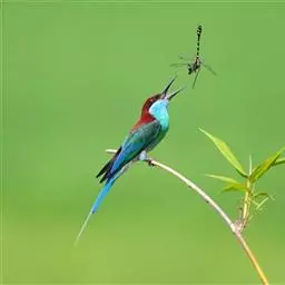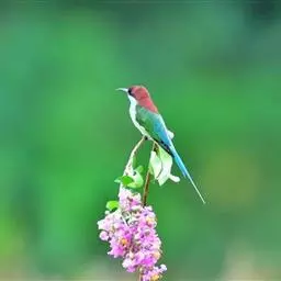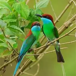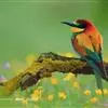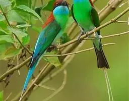 蓝颊蜂虎:是蜂虎科、蜂虎属的鸟类,共有2个亚种。体长27-33厘米,翼展46-49厘米,…