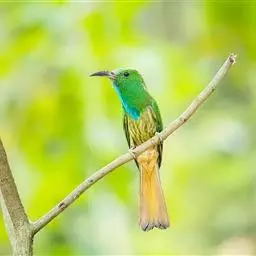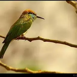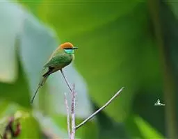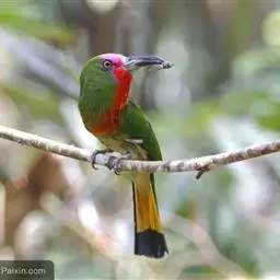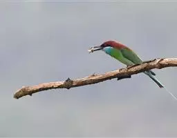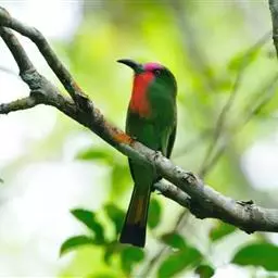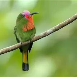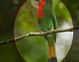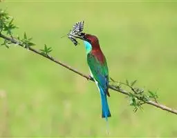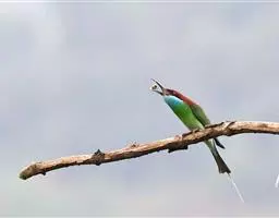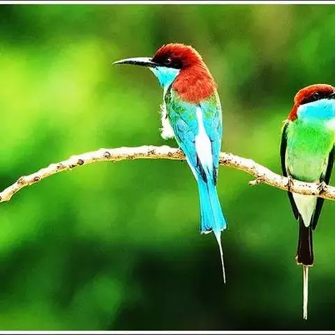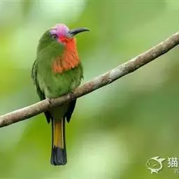 栗喉蜂虎是蜂虎科蜂虎属的鸟类。有热带鸟类羽毛艳丽的特征:喉部是栗红色的,黑色的过眼纹,…