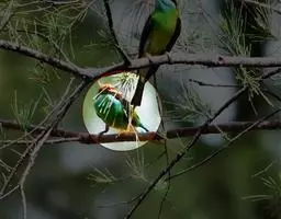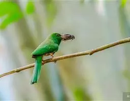 南红蜂虎的卵 南红蜂虎为卵生,全年可繁殖,高峰期在9-10月份,每巢产卵2-5枚,孵化期为11-13天。会在堤岸挖穴筑巢,隧道长1-3.5米。