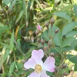白蔷薇:直立灌木,高约2米;小枝有不等钩状皮刺,有时混有刺毛。小叶通常5,稀7,宽椭圆形或卵形,…