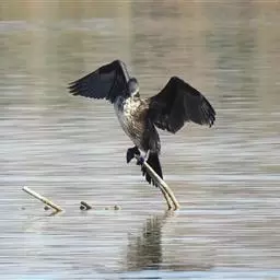 双冠鸬鹚(学名:Phalacrocorax auritus)是鹈形目鸬鹚科的鸟类,鸟嘴强而长,上嘴两侧有沟,嘴端有钩,适于啄鱼;下嘴基部有喉囊;鼻孔小,在成鸟完全隐闭;眼先裸出;颈细长;两翅长度适中,缺第五枚次级飞羽;尾圆而硬直,有12-14枚尾羽;脚位于体的后部;跗蹠短而无羽;趾扁,后趾长,有蹼相连。潜水后羽毛湿透,需张开双翅在阳光下晒干后才能飞翔。