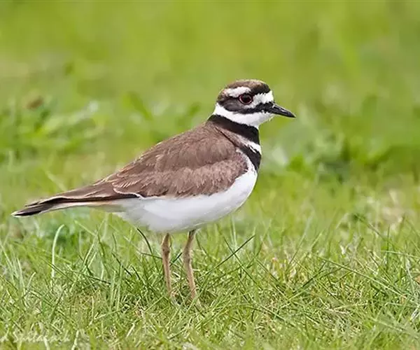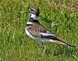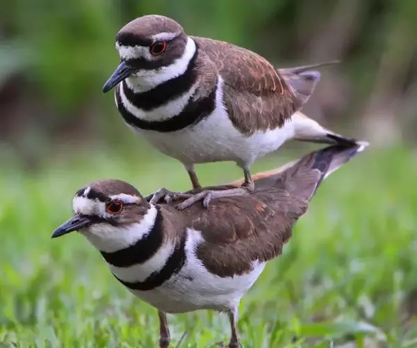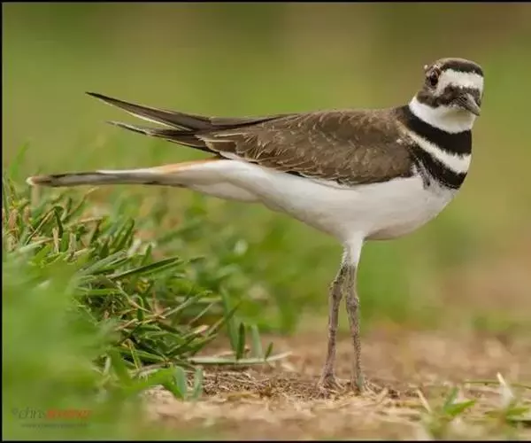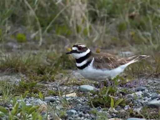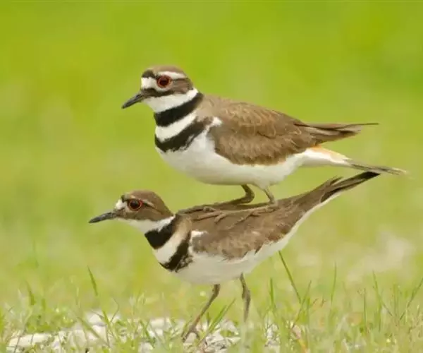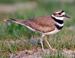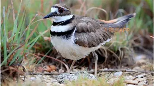 双领鸻(学名:Charadrius vociferus)属中小型涉禽。背褐色,腹白色,胸有两条黑色带。飞行时显现出黑白相间的翅和褐色的尾。跗蹠修长,胫下部亦裸出。中趾最长,趾间具蹼或不具蹼,后趾形小或退化。翅形尖长,第1枚初级飞羽退化,形狭窄,甚短小;第2枚初级飞羽较第3枚长或者等长。三级飞羽特长。尾形短圆,尾羽12枚。是迁徙性鸟类,具有极强的飞行能力。通常沿海岸线、河道迁徙。生活环境多与湿地有关,离不开水。栖息于海滨、岛屿、河滩、湖泊、池塘、沼泽、水田、盐湖等湿地之中。分布于美洲地区。
