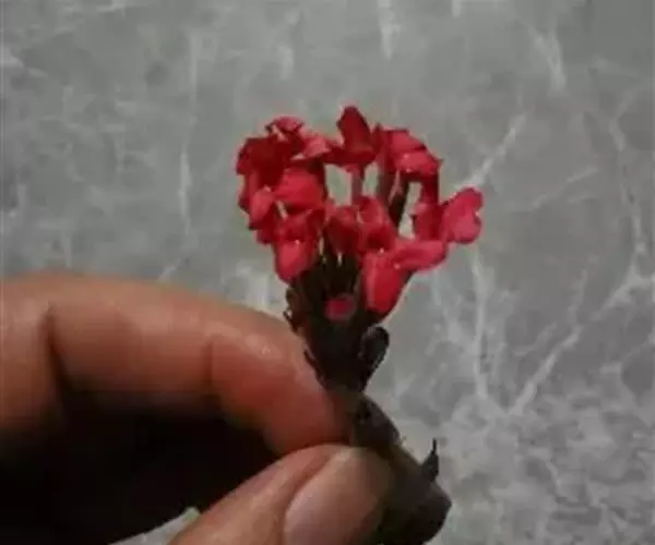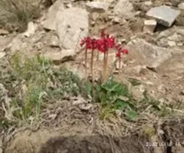 花葶稍粗壮,高20-45(70)厘米;伞形花序1-3轮,几每轮6-10(20)花;苞片披针形,长3 7毫米,先端渐尖,基部互相连合;花梗长l-3(4)厘米;花萼狭钟状,长6-10毫米,分裂达全长的1/3,裂片三角形,边缘具腺状小缘毛;花冠暗朱红色,冠筒管状,裂片狭矩圆形,长4-8毫米,宽2.5-3毫米,全缘,通常反折贴于冠筒上;长花柱花:冠筒长11-13毫米,雄蕊着生于冠筒中下部,距基部4-5毫米,花柱长近达冠筒口;短花柱花:冠筒长4-19毫米,雄蕊着生于冠筒上部,花药顶端距筒口约2毫米,花柱长3 4毫米。蒴果稍长于花萼。花期5-6月,果期7月。