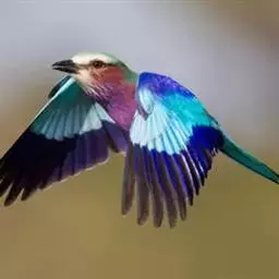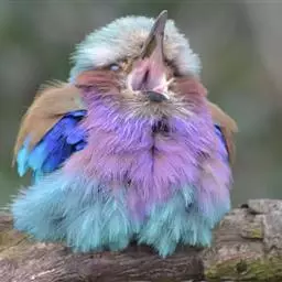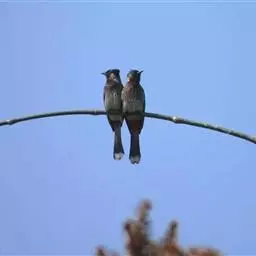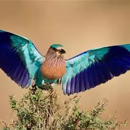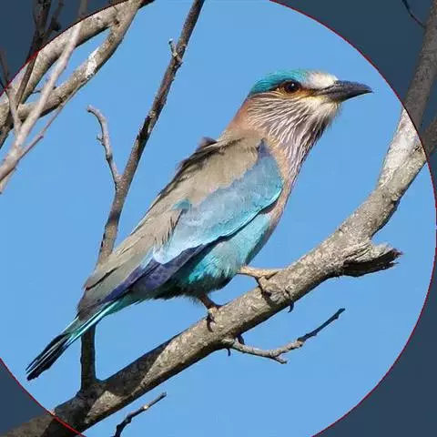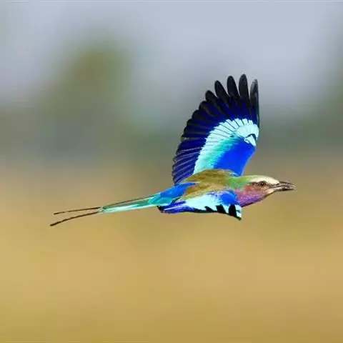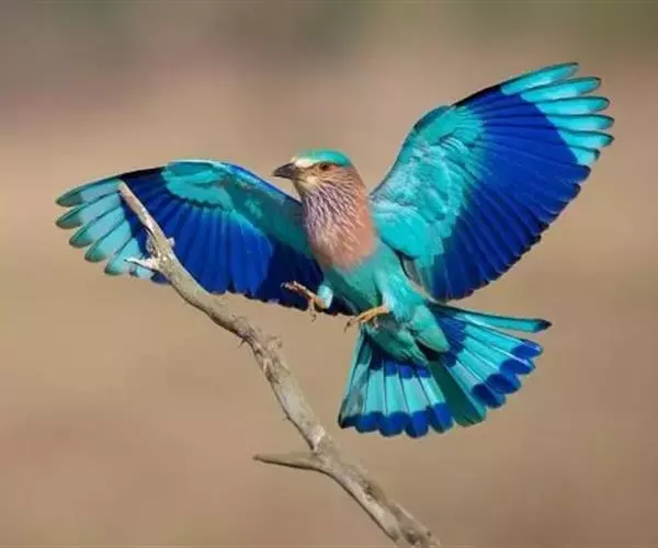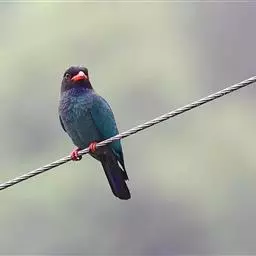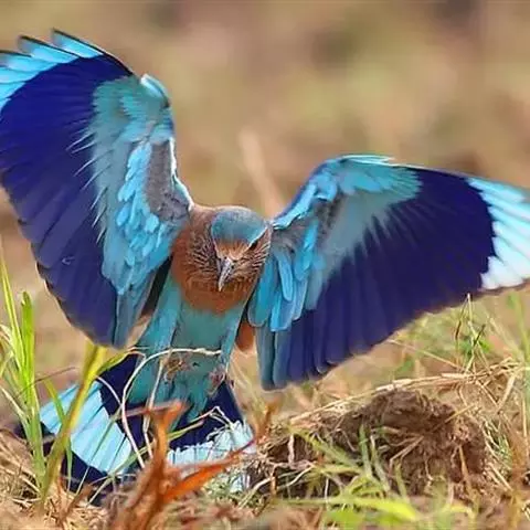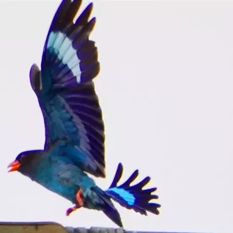 棕胸佛法僧(学名:Coracias benghalensis)中型鸟类,体长32~35厘米。黑色的嘴细而下弯。头顶暗蓝色,喉、上背及部分飞羽淡紫;上胸葡萄紫色,具蓝色中央纹,下胸葡萄褐色,腹和尾下覆羽淡蓝色。腰蓝紫色,尾上覆羽辉蓝色。背部及中央尾羽暗绿。飞行时两翼及尾部的鲜艳蓝色非常显眼。停栖时此鸟看似暗淡,但近看其头顶、尾覆羽及两翼为华美的青蓝色组合。