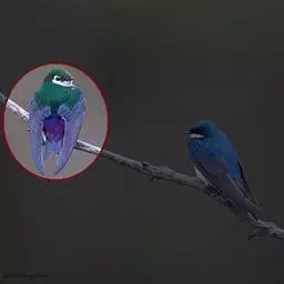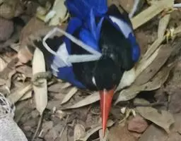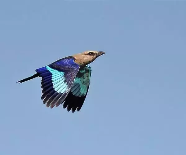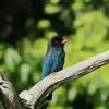 与相似种蓝胸佛法僧的区别在于头及胸部蓝色较少;与三宝鸟区别在于嘴黑色。