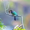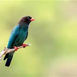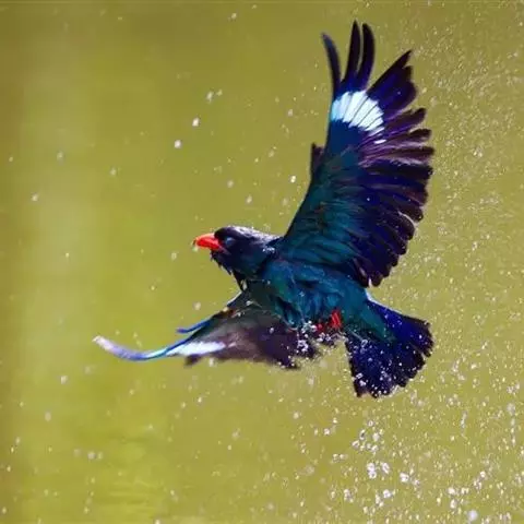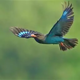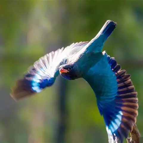 三宝鸟,是佛法僧目佛法僧科三宝鸟属中小型攀禽。成鸟通体为富有光泽的墨蓝绿色,…