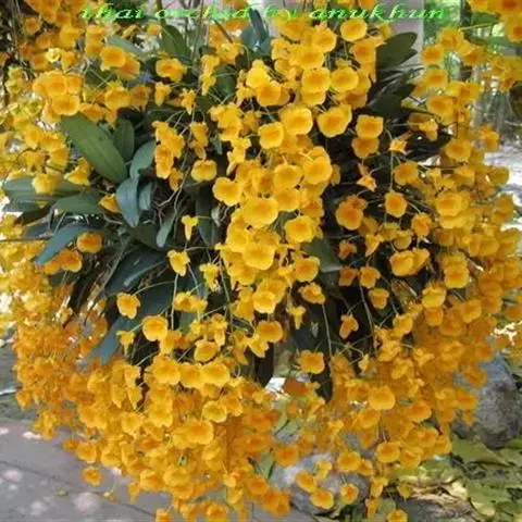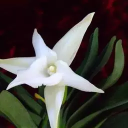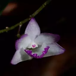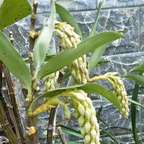 黑毛石斛(学名:Dendrobium williamsonii Day et Rchb. f.):茎圆柱形,有时肿大呈纺锤形,不分枝,具数节。叶数枚,通常互生于茎的上部,革质,长圆形。总状花序出自具叶的茎端,具1-2朵花;花开展,萼片和花瓣淡黄色或白色,相似,近等大,狭卵状长圆形,长2.5-3.4厘米,宽6-9毫米,先端渐尖,具5条脉;唇瓣淡黄色或白色,带橘红色的唇盘,长约2.5厘米,3裂。花期4-5月。
