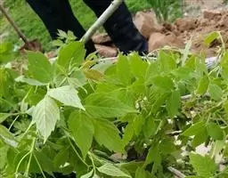 2、准备插条。选择这一年生长的比较强壮的长度是20厘米的羽毛枫枝条,上端有2个饱满芽,用快速蘸取1000ppm萘乙酸粉剂,扦入砋石或珍珠岩与塘泥各半的基质中。