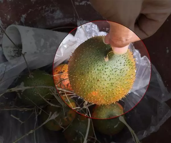 果实卵球形,顶端有1短喙,基部近圆,长达12-15厘米,成熟时红色,肉质,密生长3-4毫米的具刺尖的突起。种子多数,卵形或方形,干后黑褐色,长26-28毫米,宽18-20毫米,厚5-6毫米,边缘有齿,两面稍拱起,具雕纹。花期6-8月,果期8-10月。
