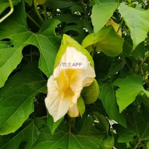 雌雄异株。雄花:单生于叶腋或有时3-4朵着生在极短的总状花序轴上,花梗粗壮,近无毛,长3-5厘米,若单生时花梗长6-12厘米,顶端生一大型苞片;苞片无梗,兜状,圆肾形,长3-5厘米,宽5-8厘米,顶端微缺,全缘,有缘毛,基部稍凹陷,两面被短柔毛,内面稍粗糙;花萼筒漏斗状,裂片宽披针形或长圆形,长12-20毫米,宽6-8毫米,先端渐尖或急尖,有短柔毛;花冠黄色,裂片卵状长圆形,长5-6厘米,宽2-3厘米,先端急尖或渐尖,基部有齿状黄色腺体,腺体密被长柔毛,外面两枚稍大,内面3枚稍小,基部有黑斑;雄蕊3,2枚2室,1枚1室,药室1回折曲。雌花:单生于叶腋,花梗长5-10厘米,近中部生一苞片;苞片兜状,长、宽均为2毫米;花冠、花萼同雄花;子房卵状长圆形,长约1厘米,密生刺状毛。