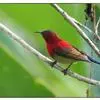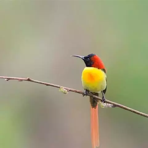 火尾太阳鸟为太阳鸟科太阳鸟属的鸟类。体长20厘米,色彩艳丽。雄鸟红色,具形长的艳猩红色中央尾羽。…