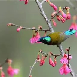 纹背捕蛛鸟:为太阳鸟科捕蛛鸟属的鸟类。是太阳鸟科中体型较大的一种,体重25-45克,…