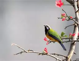 黑胸太阳鸟:小型鸟类,体长9-15厘米。嘴细长而向下曲。雄鸟中央尾羽特长,尾呈楔形,…