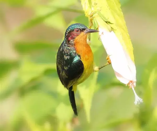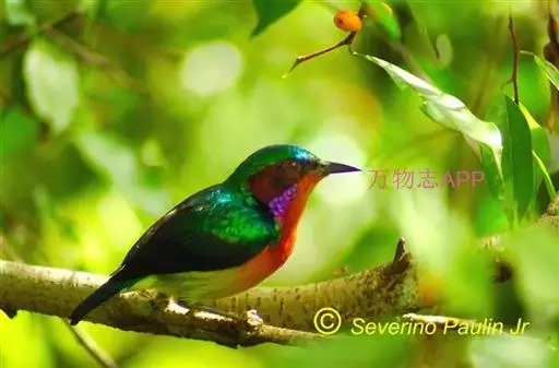 体小(10厘米)而色彩艳丽的太阳鸟。