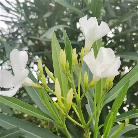 白花夹竹桃是夹竹桃科、夹竹桃属植物夹竹桃的栽培品种。常绿直立大灌木,枝条灰绿色;嫩枝条具稜,被微毛,…
