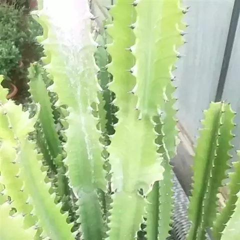 霸王鞭,是大戟科大戟属的多年生肉质灌木,全株含白色乳汁;茎直立,茎基部圆柱形,上部4~5纵棱,…