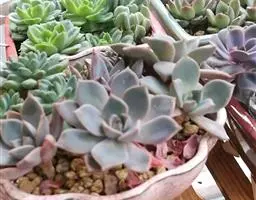 蓝石莲是景天科、拟石莲花属的多肉植物。茎部粗壮,成熟植株茎部木质化。叶片莲座型密集排列,株径不会很大,…