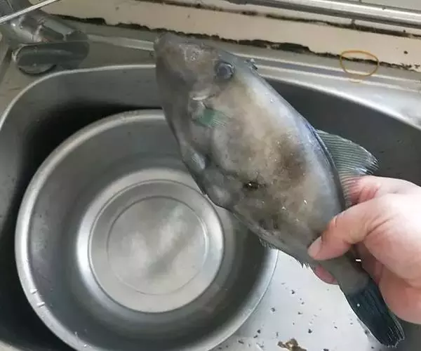 2.用盐均匀地抹在鱼的两面和肚子里腌一个晚上(因为鱼大,时间短,不容易入味)盖上保鲜膜,放入冰箱 保存。