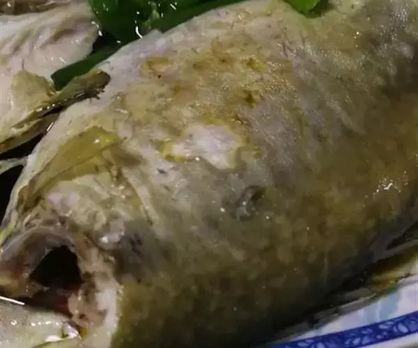 4.鱼蒸好后在锅里闷一会,然后端出,在鱼身上撒上葱花。