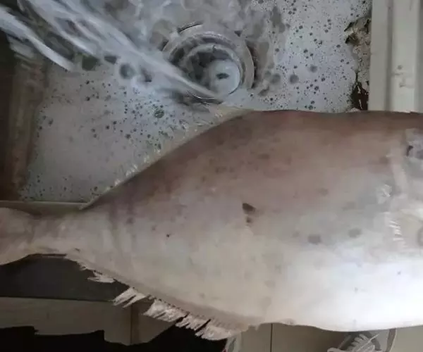 原料:马面鱼(剥皮鱼)一条500克,精盐750克,净油200克,料酒20克,生姜50克,小葱50克。
