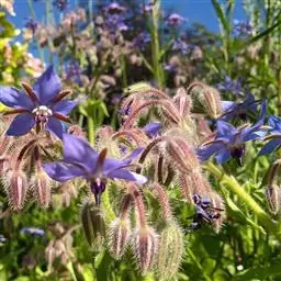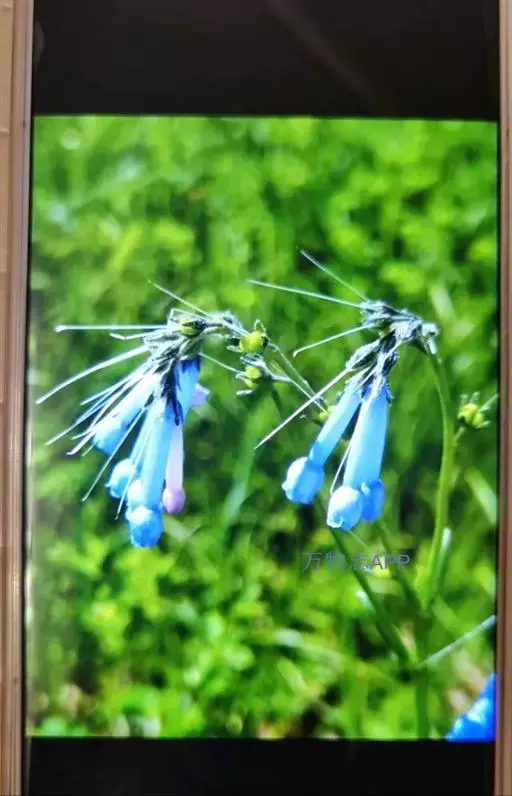 花冠蓝色,长1.2-2.2厘米,无毛,筒部直,长约为檐部的三倍半,直径2-3.5毫米,檐部比筒部稍宽,5浅裂,裂片近半圆形,稍开展,高约2毫米,全缘,喉部附属物半圆形,高约0.5毫米,平滑;雄蕊着生于喉部附属物之间,花丝长约2毫米,花药线状长圆形,长约2.5毫米;花柱与花冠近等长,柱头盘状。