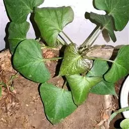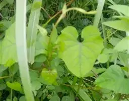 番薯 Lam.),多年生草质藤本植物,具有乳汁;其块根为白、红或黄色;茎生不定根;叶呈宽卵形或卵状心形,叶色有浓绿、黄绿、紫绿等,前端渐尖,基部呈心形或近平截;花冠为粉红、白、淡紫或紫色,呈钟状或漏斗状,无毛;蒴果呈卵形或扁圆形;由于番薯是于异花授粉,自花授粉常不结实,所以有时只见开花不见结果。 种子1-4粒,通常2粒,无毛。番薯原产于南美洲及大、小安的列斯群岛,现已广泛栽培在全世界的热带、亚热带地区,但在一些较北的地区如黑龙江省也已栽种成功,中国大多数地区都普遍栽培。番薯适应性强,喜温暖多光而不耐霜冻,抗旱耐碱,适种于肥沃而排水良好的砂质壤土,是一种易于保收的作物。番薯是一种高产而适应性强的粮食作物,在中国南方,有“一造番薯半年粮”的说法, 与工农业生产和人民生活关系密切;块根除作主粮外,也是食品加工、淀粉和酒精制造工业的重要原料;根、茎、叶可作