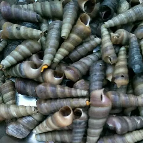 山坑螺呈圆锥形,如小手指大小,每年秋天是吃山坑螺的最佳时节。