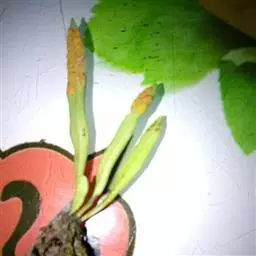 叶远生,相距1.5-5厘米,二型;不育叶长圆形至卵形,长1-2厘米或稍长,圆头或钝圆头,基部楔形,几无柄,全缘;能育叶舌状或倒披针形,长3-6厘米,宽不及1厘米,基部狭缩,几无柄或具短柄,有时与不育叶同形,肉质,干后革质,上面光滑,下面疏被鳞片。