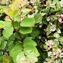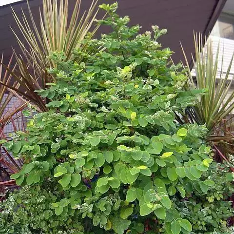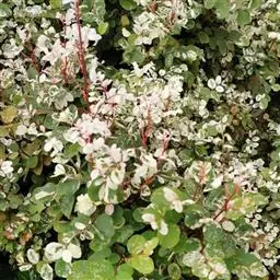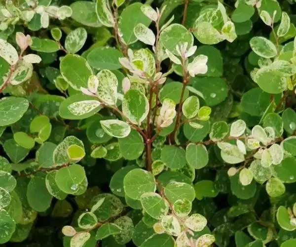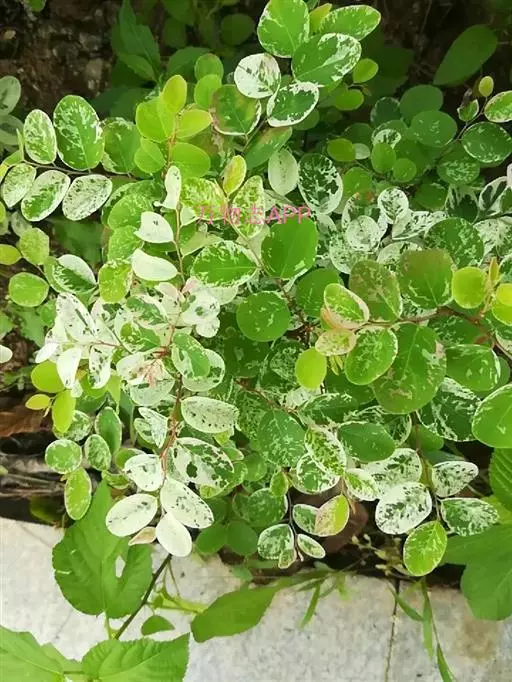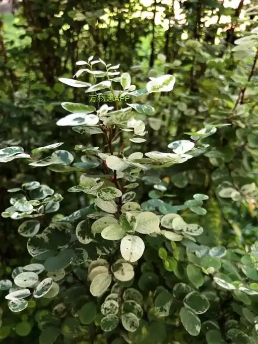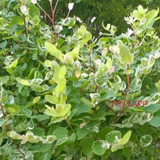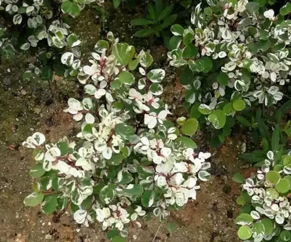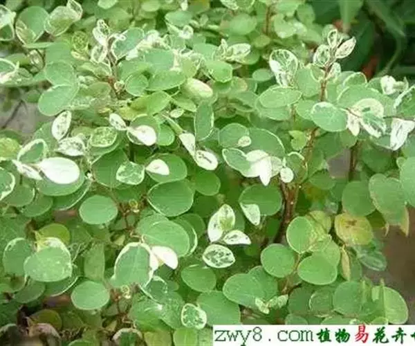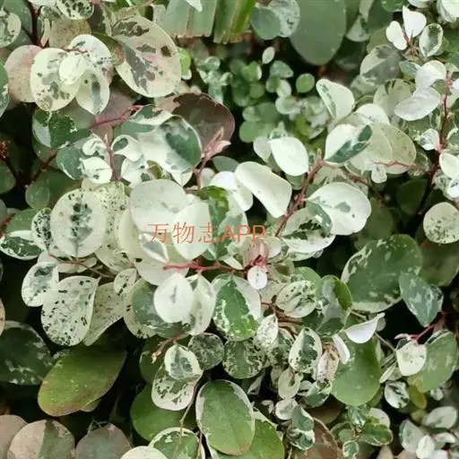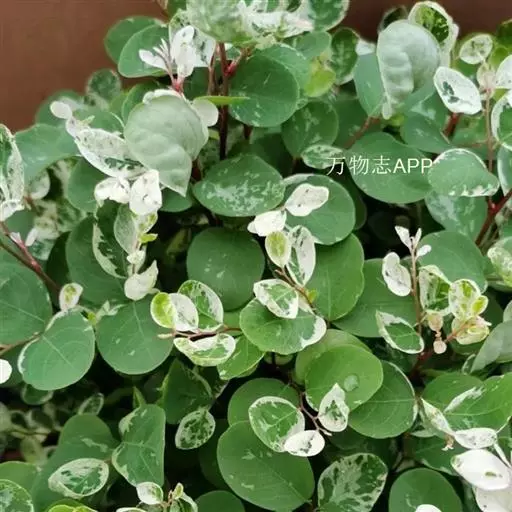 常绿小灌木。株高约50~120厘米,枝条暗红色 。叶互生,圆形或阔卵形,全缘。白色或有白色斑纹。嫩时白色,成熟时绿色带有白斑,老叶绿色。花小,花有红色、橙色、黄白等色,花期、夏秋两季。